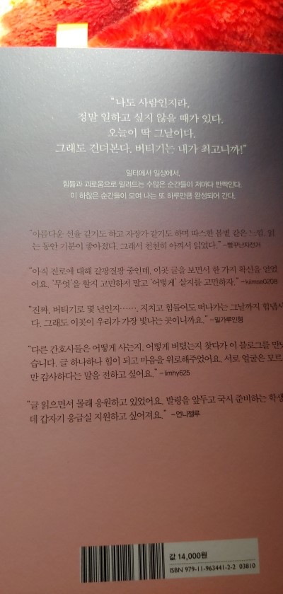 잘 알수 있을것이다. 사람은 커가면서 한없이 외로움을 많이 느낀다. 어렸을때와 너무 상반대라 그런것일수도 있다. 한장 한문장을 읽으면서 조금이나마 위로가 되는 일상이 되었으면 한다.