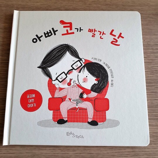 아빠가 어디 아픈가봐요. 표지 그림 속 아빠는 입에 체온계를 물고 있고 코가 아주 빨개요. 잠옷 차림이구요. 그런 아빠의 모습을 바라보는 예쁜 꼬마. 어떤 이야기가 담겨 있는지 책 속으로 들어가봅니다.