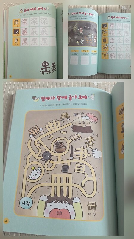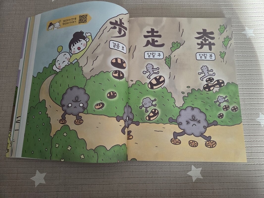 겨울 방학 동안 아이랑 한자 공부 해볼까하던 차에 한자 급수책 같이 외우기만하는 책은 흥미가 없을 것 같아 이 책을 골라봤는데 잘 한 것 같아요. 흥미로운 이야기와 함께 그림을 통해 QR코드 속 동영상을 보면서 한자를 자연스레 기억하게 되니 외워라하면서 잔소리하지 않아도 되고 아이도 즐겁게 배우니 서로에게 좋은 것 같아요.