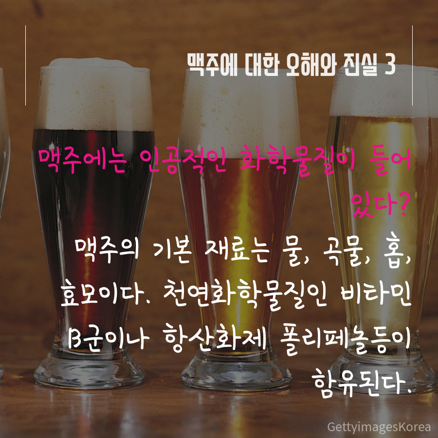 맥주에 대한 상식사전을 통해서 맥주 성분들과 제조과정, 숙성과정을 통해 다양한 종류의 맥주가 만들어 진다는 사실을 알게 되었습니다.