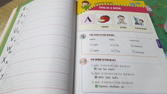 저희가 공부하는 책은 a하면 항상 alligator를 했는데 책마다 소개하는 영단어가 다르니까 이렇게 단어폭을 넓혀가는거죠