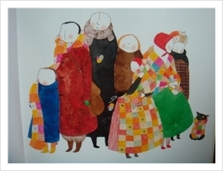 대신 할머니의 이야기를 듣기 위해서는 작은 담요에 바싹 다가앉아야 되었답니다. 아기 올가와 고깃간 아저씨...고양이까지~ 이제 한올도 남지 않은 이야기 담요! 사람들은 누군지 몰라 모였다가... 알게 되었답니다. 할머니의 집앞에 이렇게 이쁜 털실들이 한가득 있네요~~~ 할머니의 따뜻한 마음이 알록달록 털실로 되돌아 온거겠죠?
