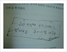 할머니의 밭에서 쪽지를 발견하고 민석이는 다시한번 할머니의 마음을 느낀다.