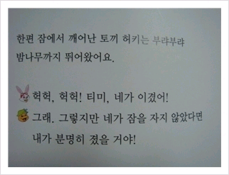 아직 동생이 책대로 정확히 하진 못했지만 토끼가 중간에 잔다는 건 알고 있었네요~