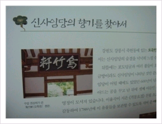 그외에 신사임당의 향기를 느낄수 있는 곳이 소개되어 있는 이 페이지는 곧 만나야 할 여행지가 되었다.