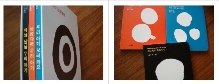 첫권은 세상에서 처음 보는 책으록, 그리고 3달쯤이면 서서히 색을 분간할수 있어 대비가 되는 색을 사용했다고 하네요.