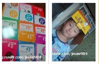상자를 모자삼아 한컷 찍었어요. 이렇게 상자도, 책도 아이에게 인기 짱이에요~~~