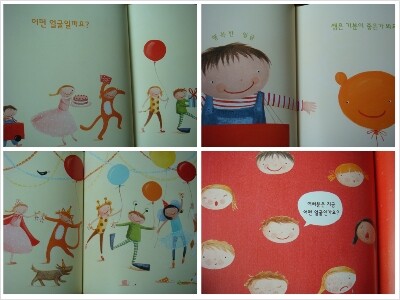 아들은 찡그린 얼굴이 재밌어서 그 얼굴을 하지만 곧 행복하게 웃음지을수 있는 책이랍니다.