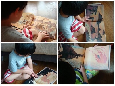 첫 속지를 보고 "뗏목이네..."라며 제가 미처 보지 못한 부분을 확인하던 아들.