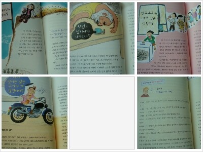 주제와 맞는 그림과 내용들, 그리고 그 내용에 필요한 질문들은 다른 색의 글씨로 나타내준다.