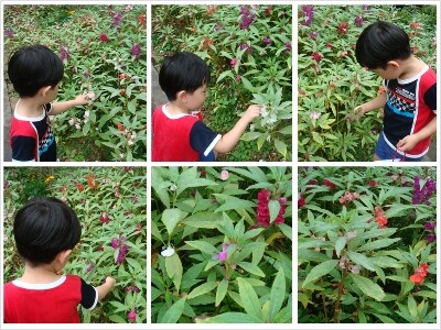 봉숭아 꽃이 피기까지의 과정을 볼수 있네요.
