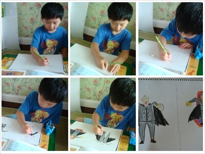 아이들이 자주 그리는것이 책속이나 만화영화속의 주인공인데... 좀 어렵지 않을까 해서 지금껏 그냥 대~충 그리라고 했답니다.