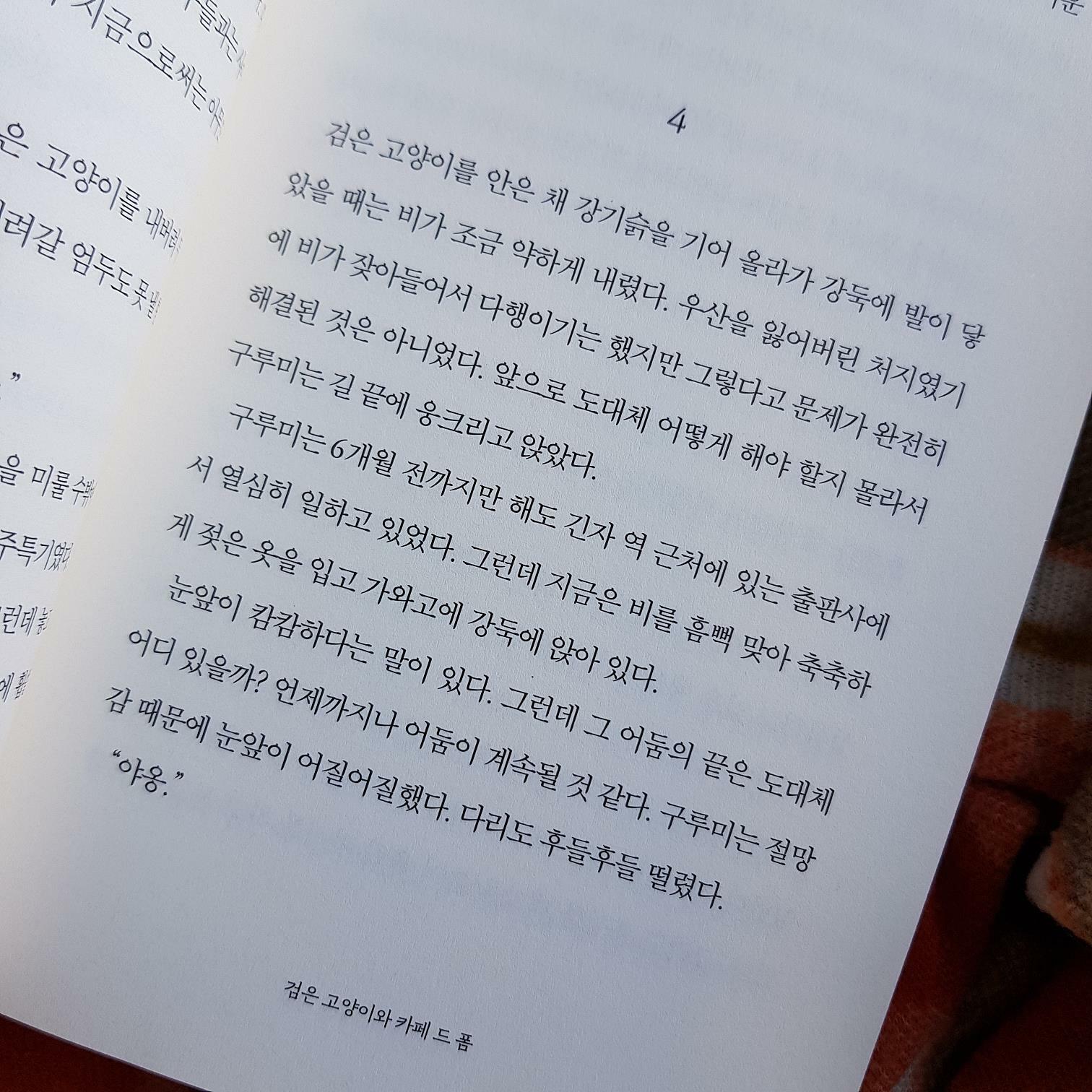 이 책은 검은 고양이 왕자의 찻집(黒猫王子の喫茶店) 시리즈 중 한 권이다. 5권까지 국내에 소개되었으면 좋겠다. 여기서 멈춰버리기엔 너무 아쉽다. 구루미 말마따나 이야기는 "지금부터 시작"인데 말이다. 자세히 밝혀지지 않은 검은 고양이 포의 과거도 궁금하고, 카페를 찾아올 다른 고양이들을 만나고 싶다.