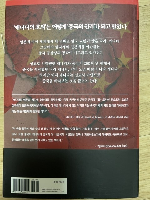 캐나다에 대한 역사지식은 거의 있지 않았다. 그냥 땅 큰 나라이고, 벤쿠버 토론토 퀘벡 이런 연상단어가 떠올랐을 뿐이었다. 그런데 놀란 건 어떻게 중국 공산당이 캐나다에 침투했느냐? 다. 진짜 소름끼치면서 한 편으로는 대단하다는 말 밖에 나오지 않았다. 물론 칭찬의 의미는 아니다. 우리나라도 중국과 가장 가까운 인접국이고, 미 중 대립관계에서 새우 등 처지이기 때문에, 그리고 반중정서도 많이 있기에 나도 좋은 감정을 가지고 있지는 않다. 중국도 인류 역사에서 한 문명을 차지한 역사적인 사실이 있다. 그런데 요즘 국제적인 사건에 사사건건 많이 끼어있다. 그리고 캐나다에 어떻게 다방면적으로 침투를 했는지는 우리가 주목해야할 부분 중 하나라고 본다. 다방면적에서 분석적으로 잘 이야기해준다. 예측불허, 변화무쌍한 환경에서 우리가 중국으로부터 어떻게 대처를 해야하는지 알아야할 필요가 있다고생각한다. 이 책의 저자는 조너선 맨소프 작가다. 언론인으로 50년 넘게 종사하셨고, 다 국가에서 특파원, 정치기자를 역임하셨다.