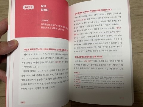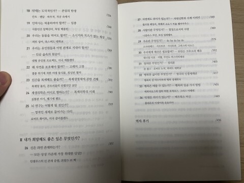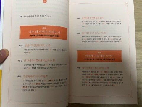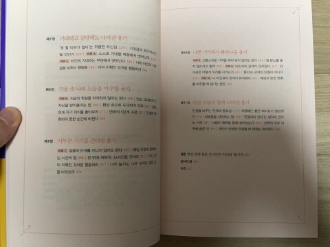제6장 미지의 세계로 혼자 뛰어들 용기 / 제7장 기대하고 실망해도 나아갈 용기 / 제8장 거울 속 나의 모습을 마주할 용기 / 제9장 서투른 시기를 견뎌낼 용기 / 제10장 나쁜 기억에서 빠져나올 용기 / 제11장 다른 사람과 함께 나아갈 용기    총 2부 11장으로 구성된다. 여러분들도 목차에서 인생에 해당되는 문제가 분명 겹칠 것이다. 하나 그 이상으로. 그러면 분명 봐야할 이유를 이 책의 내용이 자세하게 설명해줄 것이다. 설명을 넘어서 설득도 할 것이다.