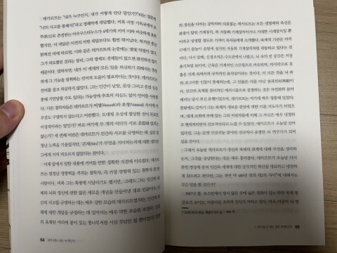 대표적으로 이 부분을 꼽았다. '나는 생각한다. 고로 나는 존재한다' 유명한 말을 남긴 데카르트다. 내가 누구인지 어떻게 내가 아는가? 방법론을 도입해서 하나하나 단계적으로 아무것도 빠뜨리지 않는 논증을 통해서 입증된 것만을 참으로 받아들이는 것이다. 생각하는 것은 어떤 객관적인 조감을 통해서가 아니라, 단지 내 머릿 속에 있는 사고만을 통해서 가능하기 때문이다. 내가 누구인지? 어떻게 안다고? 나의 사고를 통해서다. 하긴 인간과 동물의 차이점을 규명하는 것 중 하나가 생각을 하느냐? 가 아닐까? 나 역시도 복잡하고 깊게 생각하는 것을 그리 좋아하지는 않는 편이었다. 그런데 생각하는 즐거움이 그다지 나쁜 것도 아니고, 그렇게 해서 스스로 깨닫고 주체적으로 의식있게 살아가고, 내 삶을 주도적으로 이끌어낼 수 있다면, 그것보다 더 아름다운 삶이 어디있을까? 그게 바로 철학의 묘미가 아닐까? 어렵지만 그만큼의 가치는 톡톡히 보여주는 학문이라고 여긴다.