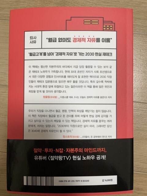 대한민국의 대다수 경제활동을 하시는 분들은 거의 다 월급재이일 것이다. 누구나 경제적자유를 꿈꿀 것이다. 나 역시도 그랬고 지금도 마찬가지다. 월급쟁이에서 돈을 모아서 독립을 한다는 것 자체가 쉬운 건 둘째치고 거의 불가능한 것이 아닌가? 그렇게 생각했었다. 혹시나 저자님께서 혹시 재산을 물러받으시거나 로또에 당첨이 된건 아닌가하는 합리적인(?) 의심도 햇었다. 우선 이 책의 저자를 소개하자면 절약왕(장성원) 선생님이다. 공기업에 입사를해서 월급 175만원으로 3년간 7,000만원을 모으셨고, 5년만에 20억원의 자산을 모으셨다고한다. 가난 속에서 절약의 가치와 올바른 경제적 자유의 방법을 알리면서 유튜브, 블로그, 네이버카페 등을 운영하고 계신다. 한 편으로는 부럽기도 하면서, 가난한 흙수저에서 인생의 중요한 목표를 이루셔서 또 다른 한 편으로는 존경의 박수를 무한히 보냈다.