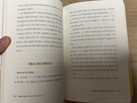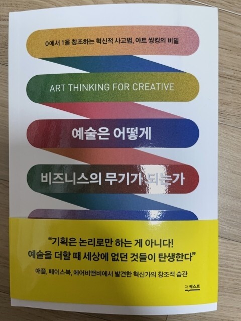 대표적으로 이 부분이 눈에 들어와서 사진으로 꼽아보았다. 해커와 화가의 공통점? 어떤 공통점이 있다고 생각하는가? 무에서 유를 창조해내고, 그림과 프로그램을 개발하고, 관찰, 몰두, 협조와 조화가 있다고 한다. 예술을 하면서 아이디어를 얻을 수 있고, 표현할수 있는 수단을 보여줄 수도 있는 것이다. 설명을 통해서 이해를 하면 다행이겠지만, 직접 이를 실천해서 나만의 아트 씽킹을 만들어내는 것도 더 중요하다고 생각한다. 정답이 있는 건 아니다. 새로운 것을 찾는 것도 쉽지가 않는데, 정답까지 맞추라는 건 어려운 것이기에. 가끔은 삐딱선으로 세상을 바라보는 것도 나쁘지 않다고본다. 다양한 시각 속에서 영감을 얻을 수도 있다고 믿기 때문이다. 한계를 뛰어넘어, 예술가가 되지 않더라도 예술적 사고를 할 수 있는 방법으로 가는 첫 번째의 걸음. 바로 이 책을 보기를 추천한다.