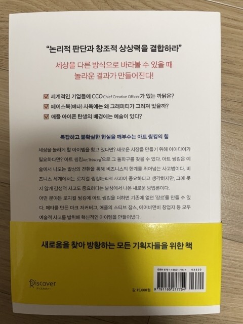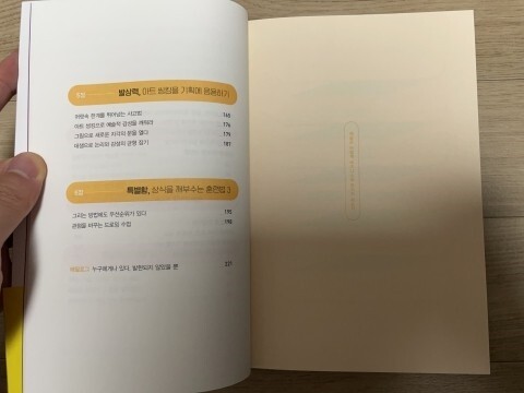 4장 일상타파, 예술이 말하는 ‘최초가 되는 법’ / 5장 발상력, 아트 씽킹을 기획에 응용하기 / 6장 특별함, 상식을 깨부수는 훈련법 3 총 6장으로 구성되며 사고의 패러다임을 새로 개척하는 내용을 배울 수 있고 좋은 시간을 가질 수 있을거라 기대된다.