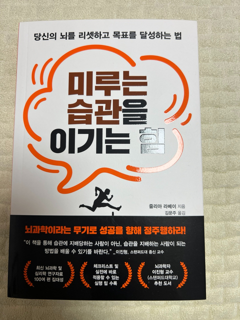 살아가면서 미룬적이 한 번도 없으신 분은 없을 것이다. 미루는 습관. 이것은 질병일까? 버릇일까? 자연스러운 인간의 본성일까? 확실한 건 미루기가 생산성, 정신 건강에 좋지 않다는 점이다. 미루는 것이 없이 미리미리한다면 편한 건 사실이다. 그런데 그것을 알면서도 미루는 건 어떤 이유에서일까? 참 신기할 뿐이다. 이 도서의 저자는 줄리아 라베이 박사다. 생물학 관점에서 알츠하이머 질환을 연구했다. 소셜미디어와 블로그를 통해 흥미로운 과학 이야기를 대중들이 이해하기 쉽게 전달하고자 노력한다. 무엇보다 내용도 풍부해지는 느낌을 받았다. 무엇보다 미루는 원인을 제대로 알아야 방법이 보일 거라 생각했다. 나 역시도 이런 행동과 결정때문에 놓치는 경우도 많았고, 자책과 후회도 많이 했었다. 어쩌면 시중에도 이런 주제로하는 컨텐츠 도서가 분명 있을 것이다. 많은 사람들이 겪는 경우라, 이번 기회에 고쳐야하겠다는 마음으로 독서에 임했다. 해야할 일을 제 때 마무리를 하지못하는 경우가 부지기수니 나도 참 많이 부끄러웠다. 그런데 소름끼친 건 내가 생각했던 내용들이 대부분 겹친다는 것이다. 목차를 알면 이 도서의 내용과 컨셉 그리고 흐름을 한 눈에 파악할 수 있다. 1부 우리 뇌의 작동법 / 2부 목표를 추진하기 전 점검 사항 / 3부 목표를 향해 정주행하는 법 / 4부 장애물에 대처하는 법   총 4부 16장으로 구성되는데 살면서 이런 문제를 한 번 이상은 고민한 분들에겐 적합한 도서가 아닐까? 그렇게 생각한다.