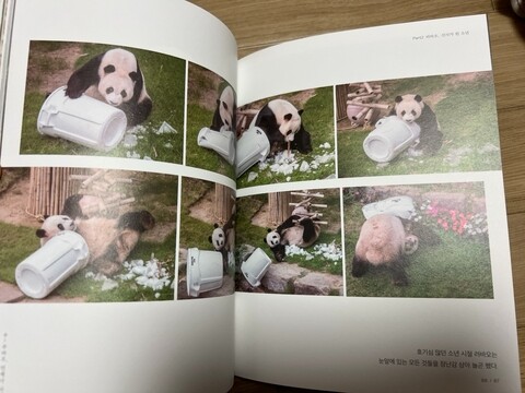 어제 푸바오를 볼 수 있는 시간이 2024년 3월 3일 일요일까지라는 소식을 접했을 때, 마음이 착잡하면서도 중국으로 가는 것이 당연하다는 감정이 교차했다. 솔직히 중국으로 가서 고향에서 새로운 판다의 생(판생)을 사는 것도 맞고, 짝을 만나서 가족을 꾸리는 것이 순리이기에 크게 감정이 요동치지는 않는다. 물론 한국을 떠나는 날에는 마음이 슬프겠지만. 어떻게보면 보잘 것 없는 판다 1마리에 불과할 수 있지만, 온 국민들에게 위로와 치유 그리고 재미와 기쁨을 주는 시간이었다고 생각한다. 태어나면서 그리고 인기를 얻어가는 과정부터. 판다는 한국과 중국간의 국민 간 우호의 메신저다. 어떻게 생각할지는 모르겠지만, 나는 개인적으로 재미있었고, 일상에 있어서 다른 시선을 돌릴 수 있는 기회의 장이라고 생각했다. 이 도서는 푸바오의 마지막 1년의 시간이 고스란히 담겨있다. 작년 봄, 여름, 가을, 겨울을 지내면서, 우리에게 준 행복의 시간들이다. 텍스트가 많은 편은 아니다. 그렇지만 그것보다 엄청난 감동을 주고 있다. 유튜브를 보면서 어떻게 사육사와 이런 장면을 만들 수 있을까? 이런 생각도하면서 동물들도 사랑을 받는 줄도 알고, 느끼고, 이것에 대해 보답을 하는 존재라는 걸 다시금 각인하게되었다. 진짜 낯선 중국에 가서 어떻게 살지? 걱정도 될 정도다. 사육사 - 동물의 관계가 아니라, 할부지 - 손녀의 관계가 더 가깝다고 할 정도다. 사진으로만 보아도 믿음, 사랑이 나도 느껴진다. 가기 전에 에버랜드에 한 번 가봐야되나? 아직까지 TV나 책으로 혹은 유튜브로만 본 1인이다. 이 도서의 저자는 푸바오의 영원한 할부지 강철원 사육사다. 이제는 모르면 간첩이다. 떠나보내는 심정이 우리보다 더 격할 것이다. 곧 새로운 여행을 떠날 푸바오에게 여태껏 말하지 못했던 마음속 이야기들을 편지로 전한다. 보는데 나도 눈물이 나는 건 어떤 이유일까? 이 도서의 구성은 Part1 푸바오, 영원한 아기 판다 / 부록 우리는 바오 가족 / Part2 러바오, 신사가 된 소년 / Part3 아이바오, 나의 영원한 사랑 / Part4 루이바오와 후이바오, 또 다른 선물 / 부록 판다월드의 구석구석 이렇게 구성된다. 다른 바오패밀리 가족들도 볼 수 있다. 어느 판다가 좋고, 싫고 그런 분들은 없을 거라 생각한다.