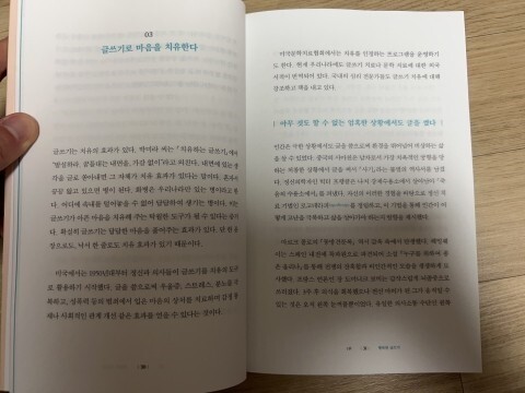 글쓰기의 또 다른 매력이 여기에 있음을 알 수 있다. 마음을 치유한다? 마음을 다스리는 것도 인터넷이나 다른 책에서 언뜻 본 것 같았다. 글쓰기를 하면서도 행복할 수 있다는 것이 사실인가보다. 흔히 누군가에게 마음을 털어놓으면 마음의 위로가 생긴다고 하지않는가? 글을 쓰는 것도 내 이야기를 독자에게 전달하는 과정 중 하나라고 생각한다. 글쓰기와 책쓰기는 다른 개념이라고 봐야할 것이다. 먼저 글쓰기가 되어야 책을 쓸 수 있다. 그렇기에 기초적인 글쓰기가 뒷받침이 되어야한다고 생각한다. 그렇다고 따로 따로 노는 것이 아니다. 책 읽기가 되다보면, 자연스럽게 글쓰기가 될 것이고, 또 유기적으로 책 쓰기가 되는 것이 아닐까? 뭐든지 처음이 힘들지언정 점점 좋아지고 행복을 주는 것이 글쓰기 책 쓰기라고 본다. 부담 갖지말고 차근차근 도전해보자!