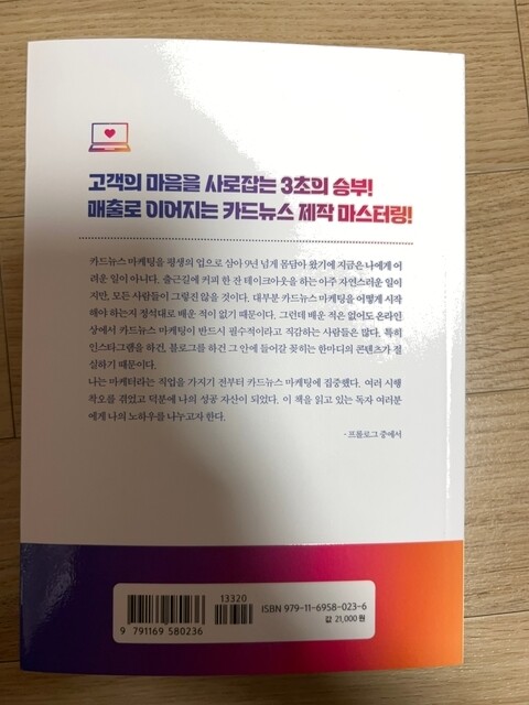 어떻게 생각하느냐? 접근하느냐?에 따라서 마케팅은 쉬울 수도 어려울 수도 있다고 생각한다. 어려운 것보다는 실행을 하려는 의지가 더 중요하다. 아무리 내가 잘나고 능력있고 뛰어나도 흥미가 없고 관심을 끌지못하면 말짱 꽝이다! 마케팅이 사업의 성패나 개인의 유명세에 좌지우지된다고 해도 과언은 아니라고 생각한다. 그렇지만 사례나 분석을 유심히 본다면 재미있다고 느껴질 것이다. 그저 어떤 제품을 판매하기 위한 기술적인 것에 집중하는 것을 뛰어 넘어서 사람과 사람사이의 소통을 통한 더 적극적이고 성공적인 성과에 이르게 하는 또 다른 열매를 맺게하는 역할을 한다고 본다. 시대의 흐름을 타면서 내 가치를 더욱 빛나게하는 카드뉴스 마케팅을 익혀서 이런 고민으로부터 얼른 벗어나는 것을 추천해본다. 저자의 모든 것이 여기에 담겨있다. 심지어 흑역사까지. 실패를 하지말고, 진정으로 성공을 하기를 바라는 진심이 여기에 고스란히 묻어나있다.