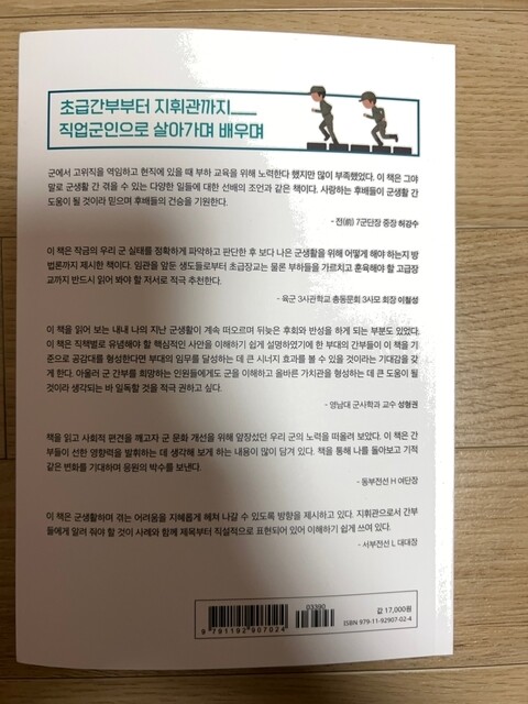 이런 분을 직장이나 사회에서 만나면 얼마나 행복할까? 이런 상상을 하게끔 만든다. 솔직히 요즘에는 알아서 스스로 맨 땅에 헤딩식으로 대하는 분들이 부지기수다. 왜냐하면 자기 업무에 바쁘기 때문이다. 군인, 군무원, 군대 이렇게만 연관검색어인 분들 뿐만 아니라, 사회초년생들도 분명 도움이 될 것이고 해당된다고 여겨진다. 조직이나 군대나 계급사회라는 사실에 조금도 변함은 없을 것이다. 성공적인 군생활 뿐만 아니라, 직장생활을 위해서도 꼭 봐두어야한다고 본다. 분명히 살아가면서 조직에 적응하는데 어려움 없이 잘 극복해 낼 수 있는 마법의 비법 같은 좋은 시간이 되지 않을까 생각이 들었다. 타겟이 대한민국 군인이 아니라, 이 땅위에 모든 젊은이들로 미리 염두해둔 것은 아닐까...? 든든한 응원과 함께 '파이팅 해야지' 해야겠다!