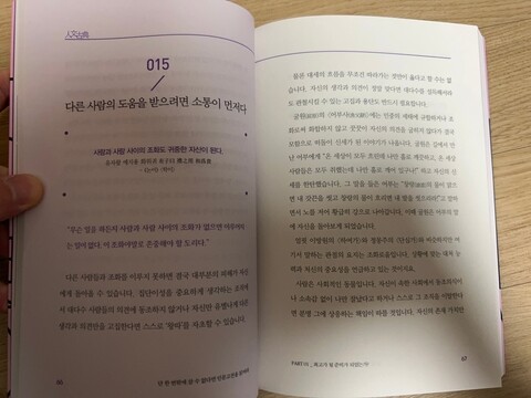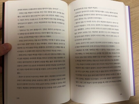겉으로 드러나는 문맥적인 의미에서 벗어나 깨달음으로 파고드는 부분이 더 재미있었다. 수박 겉 핥기 식으로 공부하는 것이 무슨 의미가 있겠는가? 쉽게 친근하게 설명을 하더라도, 논어의 진정한 의미와 본질은 그대로 유지가 된다. 우리가 가지고 있는 고통을 행복으로 바꾸고 싶은가? 그러려면 논어라는 필수관문을 거쳐야한다고 생각한다. 수 천년이 지나도 이러한 가치를 한다는 건 마땅히 박수를 받아야할 고전이다. 문제가 있으면 이렇게 명쾌하게 해결을 해주는 논어만한 도서가 또 어디있을지? 나는 그것이 궁금하다.