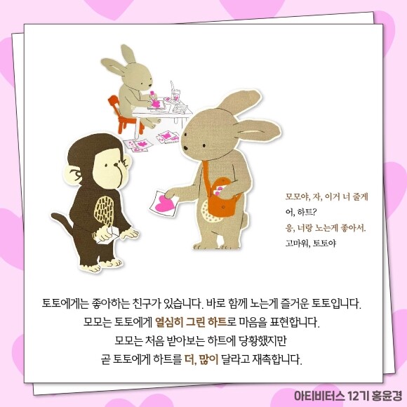 토토가 정성스럽게 하트를 그려서 모모에게 선물했어요.