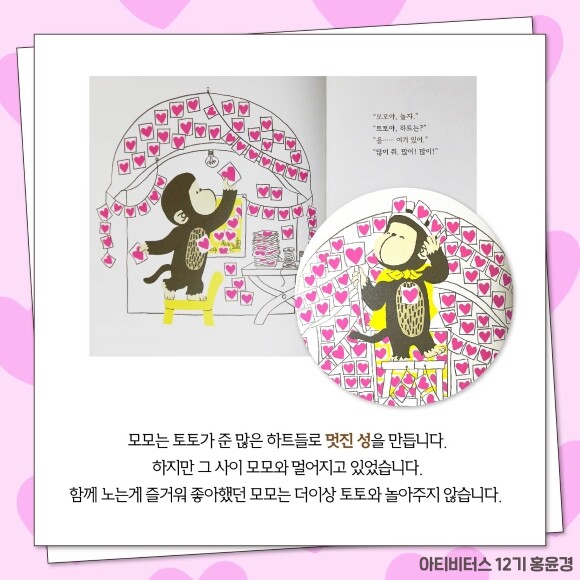 모모는 토토가 준 하트들로 성을 꾸미고 자랑하지만 ...