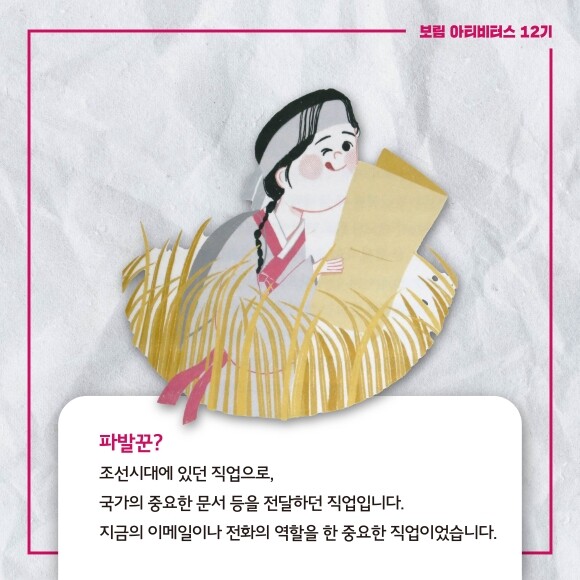 나라의 중요한 문서나 공문 등을 전달하던 직업이었죠.