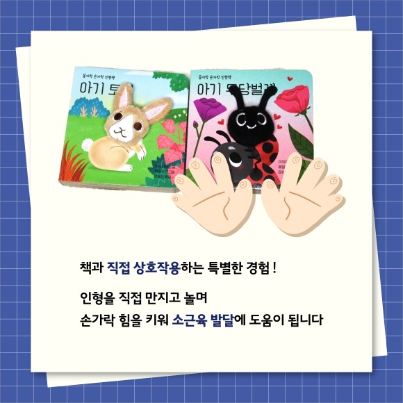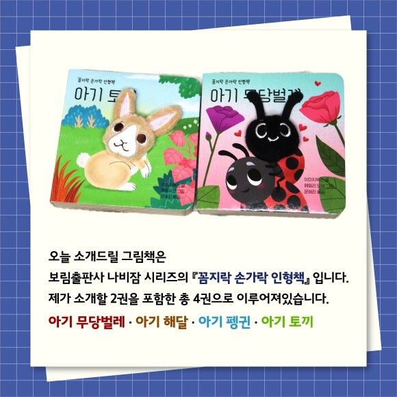 오늘 리뷰할 그림책은 꼼지락 손가락 인형책 시리즈 중 아기 무당벌레입니다!