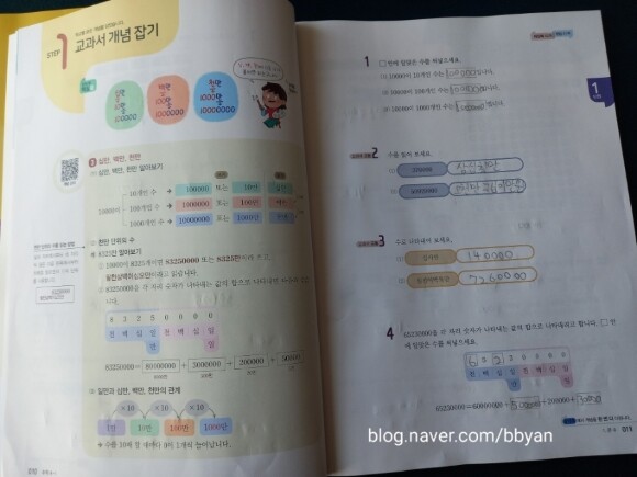 1단원 큰수를 처음 배우는데요. 다섯자리 수가 처음으로 나옵니다. 만,억,조 단위이죠.