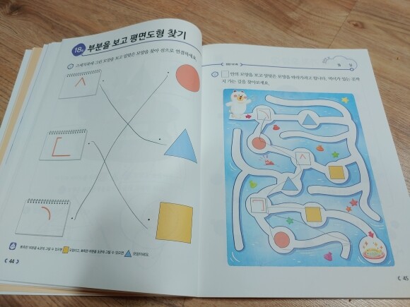 하루 두쪽씩  40일 구성 되어 있는데  재미가 있다 보니  계속 하더라고요   아이에게  하루에 두쪽 만 하면 된다니까 귀에 들어 오지 않았나봐요  재미 있게 풀수 있는 문제집이에요