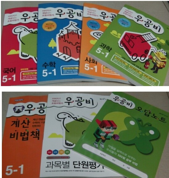 우공비 초등 세트 문제집으로 일찌감치 들여줬어요.
