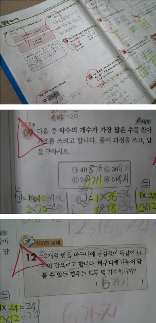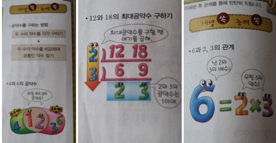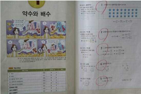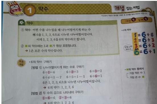 교과서 개념인 약수가 무엇인지, 약수를 구하는 방법을 배우네요.