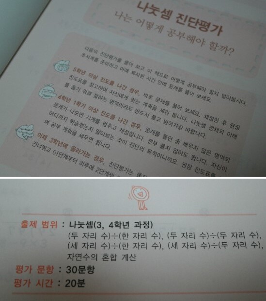 문제를 풀기 전, 나눗셈 진단평가를 통해