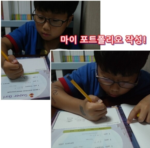 3줄의 영어 글쓰기도 어렵지 않게 쓸 수 있어서 아들의 자신감은 up, up