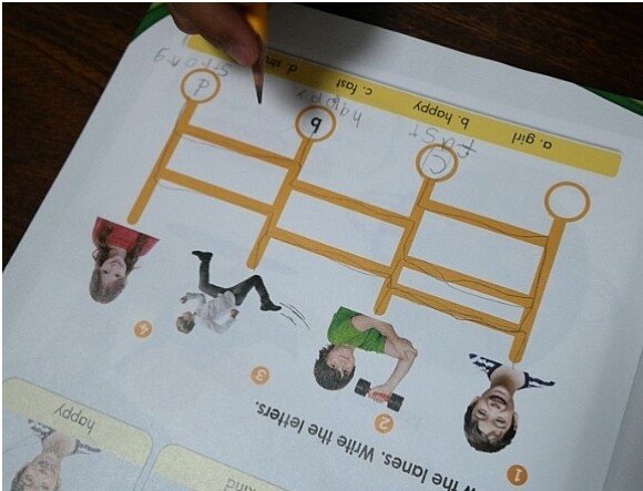 주어진 단어를 찾아 동그라미를 하게 하니까 좀 더 집중하게 되고, 자연스럽게
