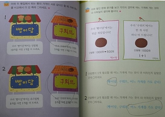 어느곳의 빵이 더 싸고 이득인지..실생활 소재로 수학과 연결해