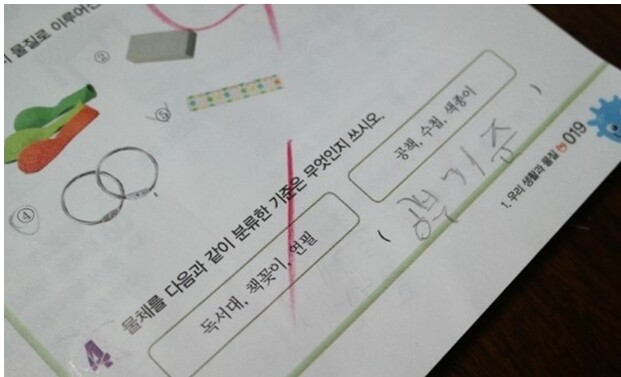 아들에게 왜 답을 <공부기준>으로 썼냐고 물어보니까