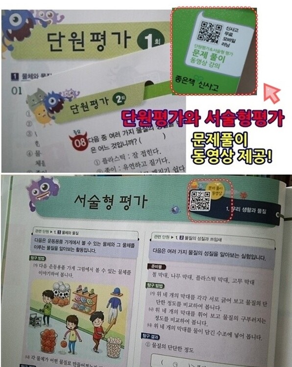 특히나 좋은점은 단원평가 서술형평가 문제 QR코드가 있어서