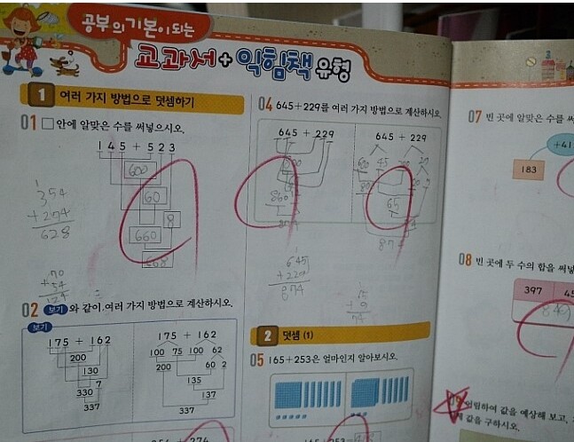 교과서개념 공부, 교과서+익힘책에 있는 여러 유형풀기, 스토리텔링 기본서술형 등..