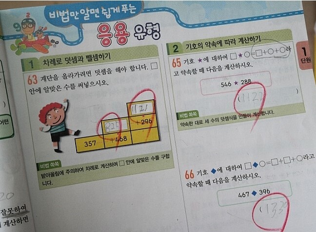 <비법쏙쏙>​으로 유형별 응용문제 푸는 비법 설명을 첨가해 두었네요