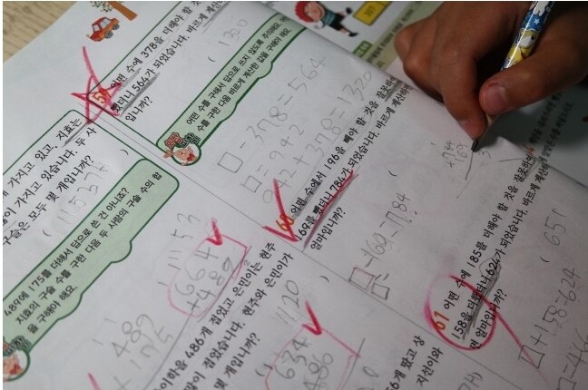 엄마와 함께 천천히 문제를 풀어보았어요.