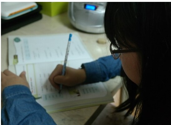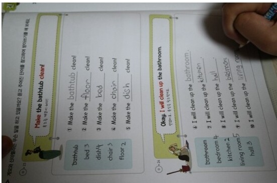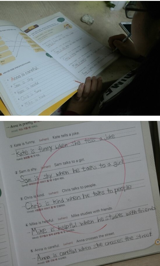 용기를 주면 영어쓰기 완성하는데 어려움이 없어요.