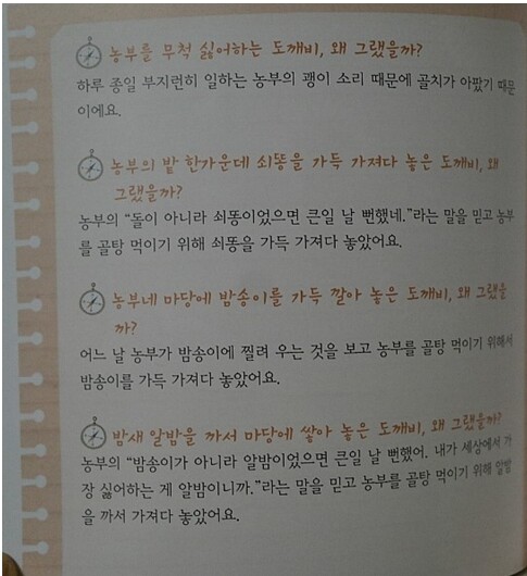 등장인물의 성격, 일이 일어난 차례대로 말해보기, 무엇을 깨달았는지 등..