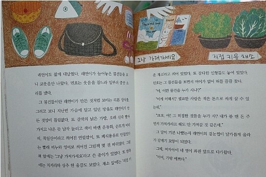 ​래연이는 벼룩시장을 통해 물건을 사기만 할게 아니고 재활용을 하며 나누는 일도 소중하다고 말합니다.