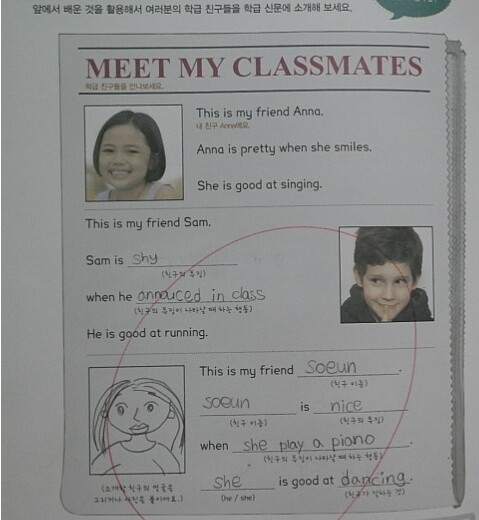 학급신문에 소개된 친구들을 아이가 직접 소개해봅니다.